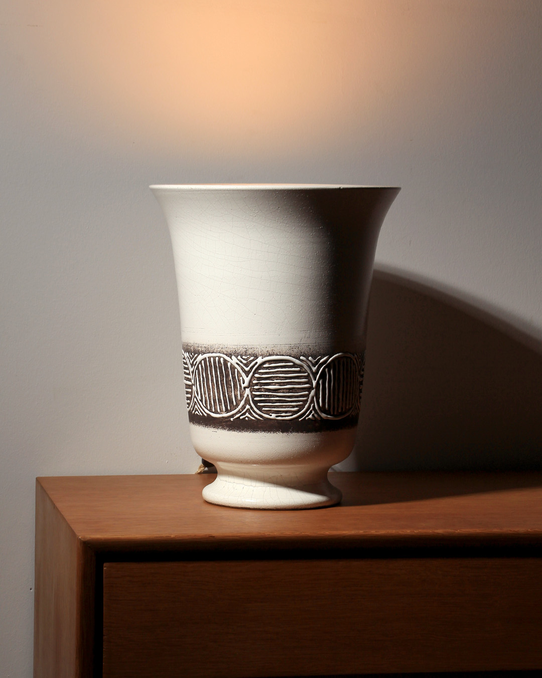 Squelette en acier chromé et lamelles d’aluminium courbés serties.