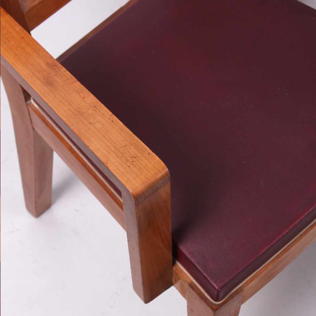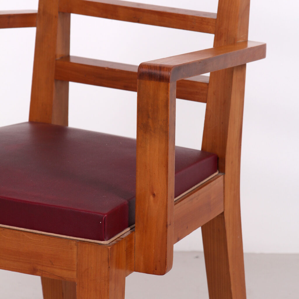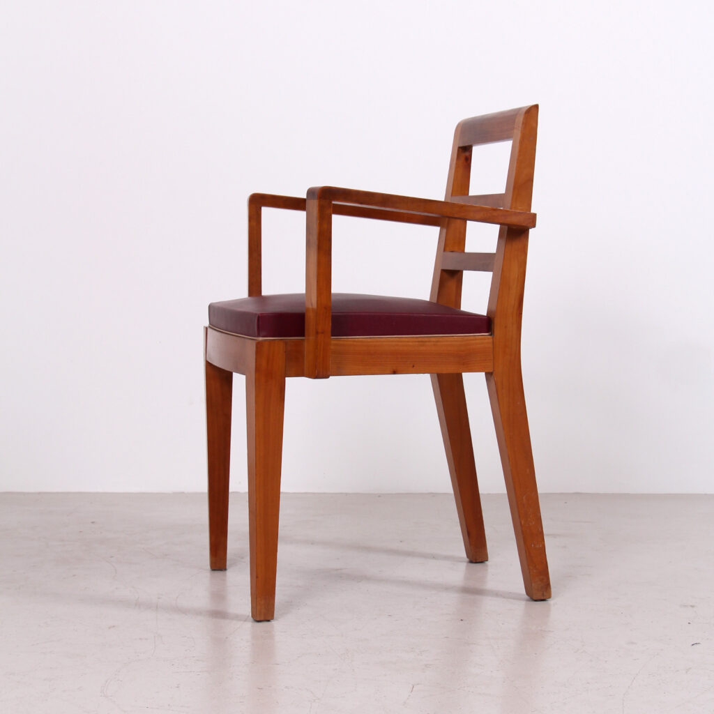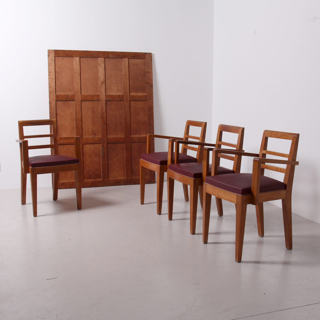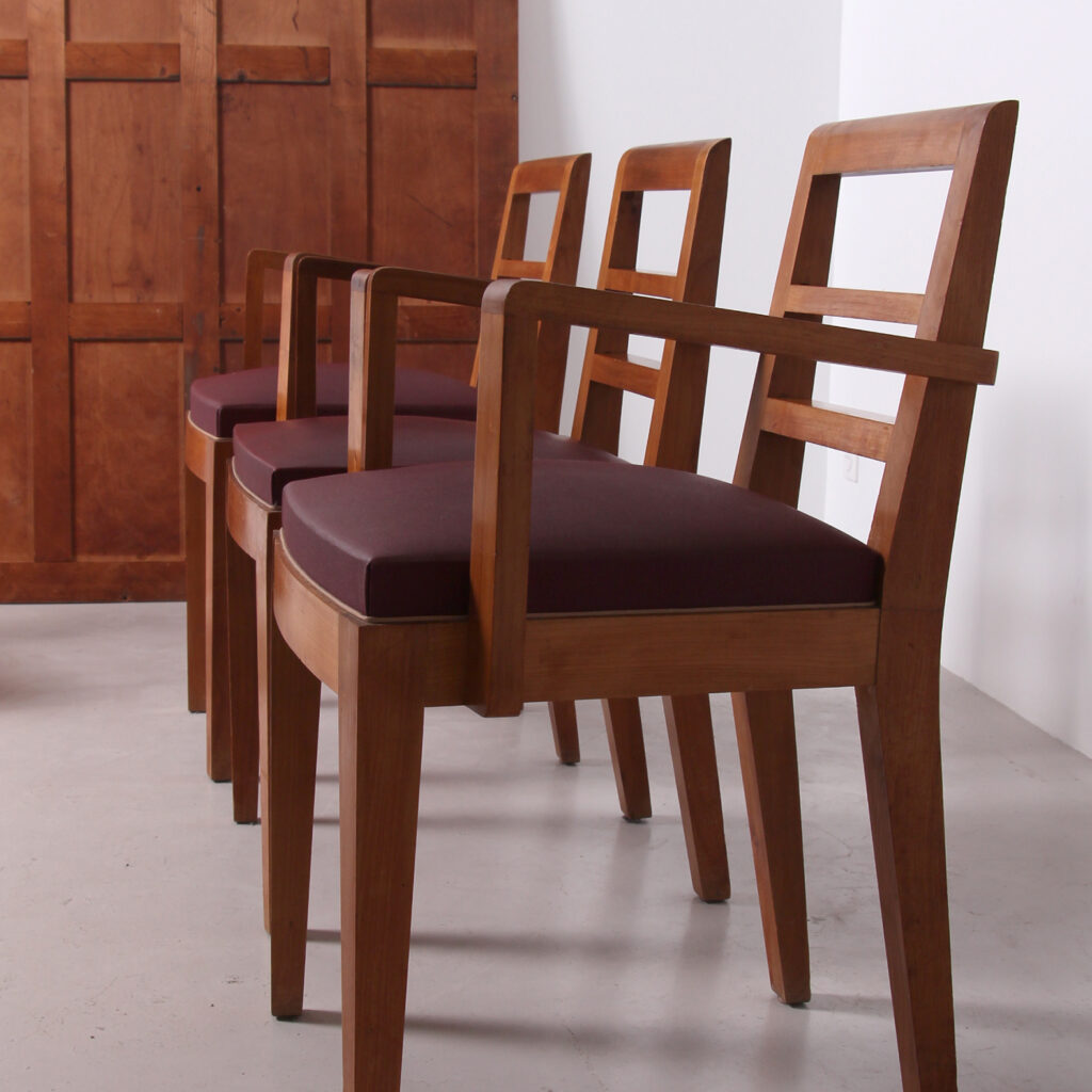 Suite de 4 fauteuils « Bridges » en bois de merisier massif, travail français – art déco / moderniste -de la fin des années 40
