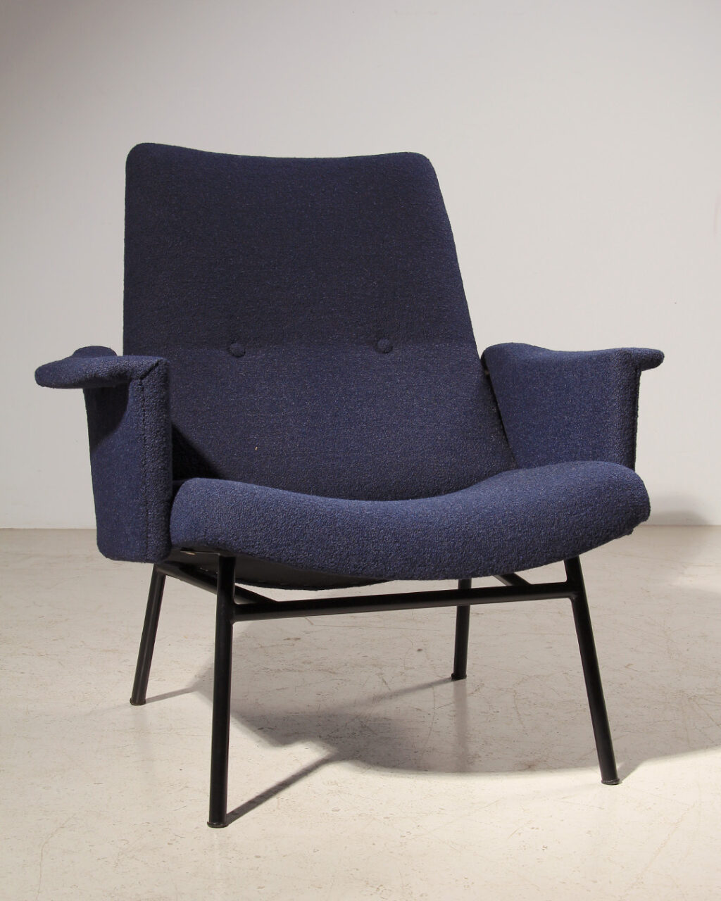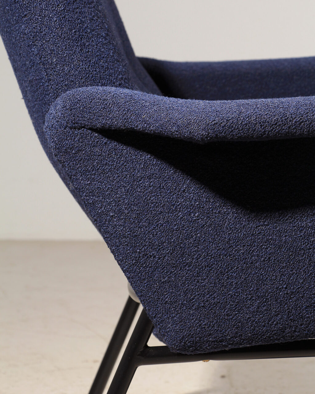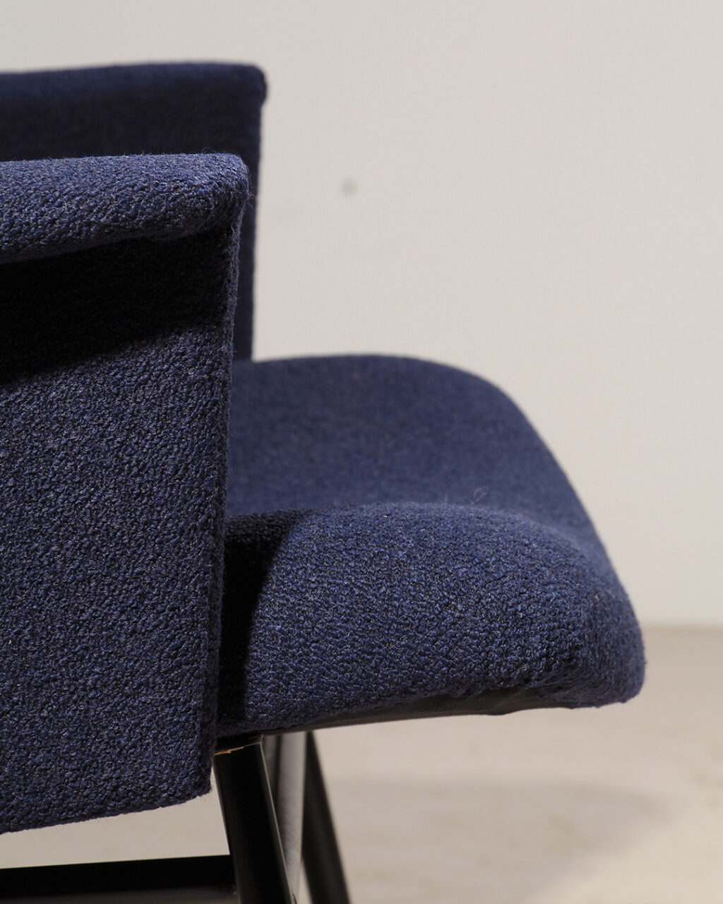 Réfection complète des sangles mousse et tapisserie – Tissu à bouclettes bleu foncé