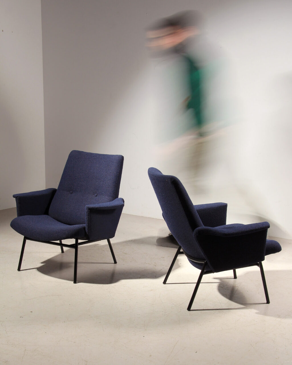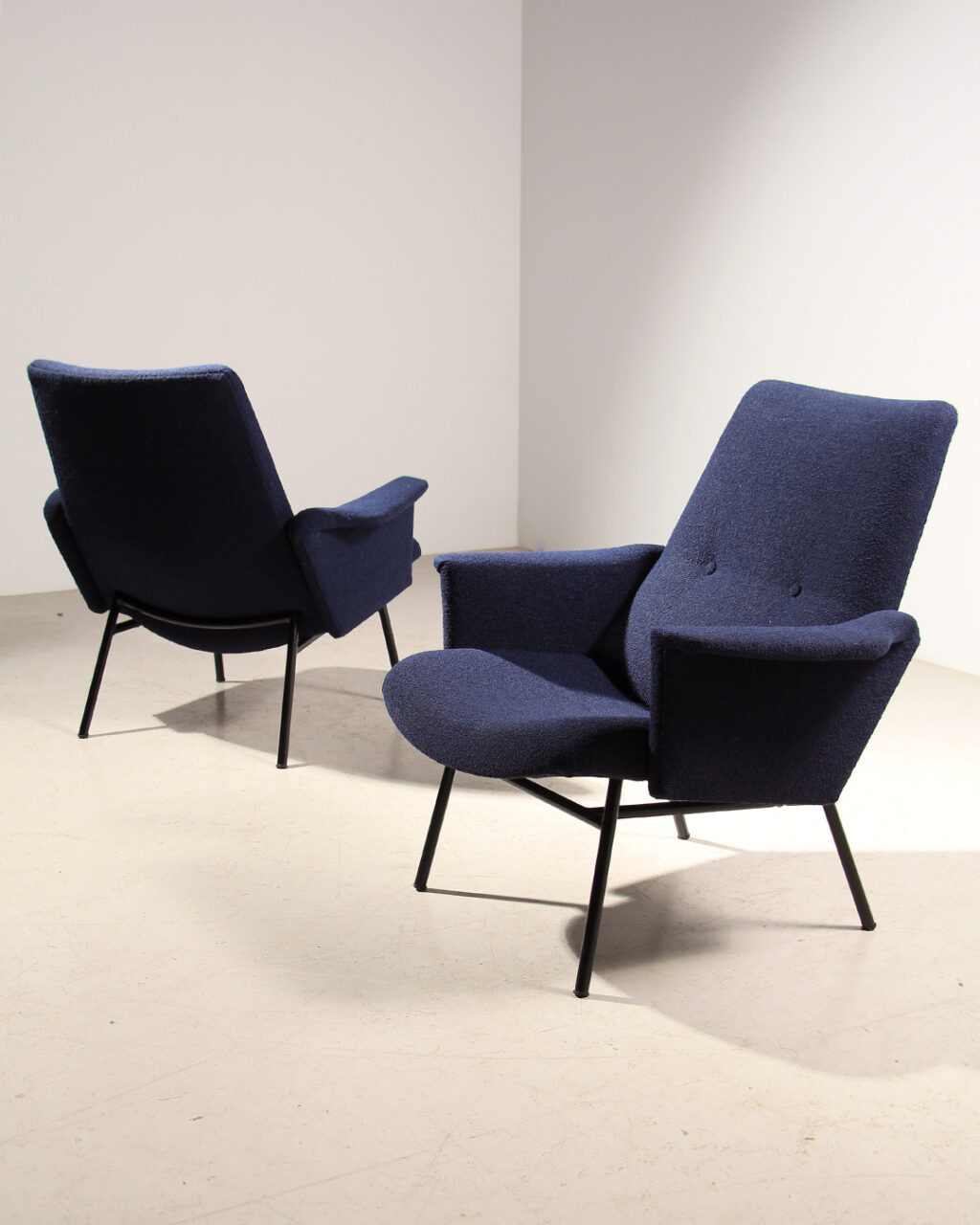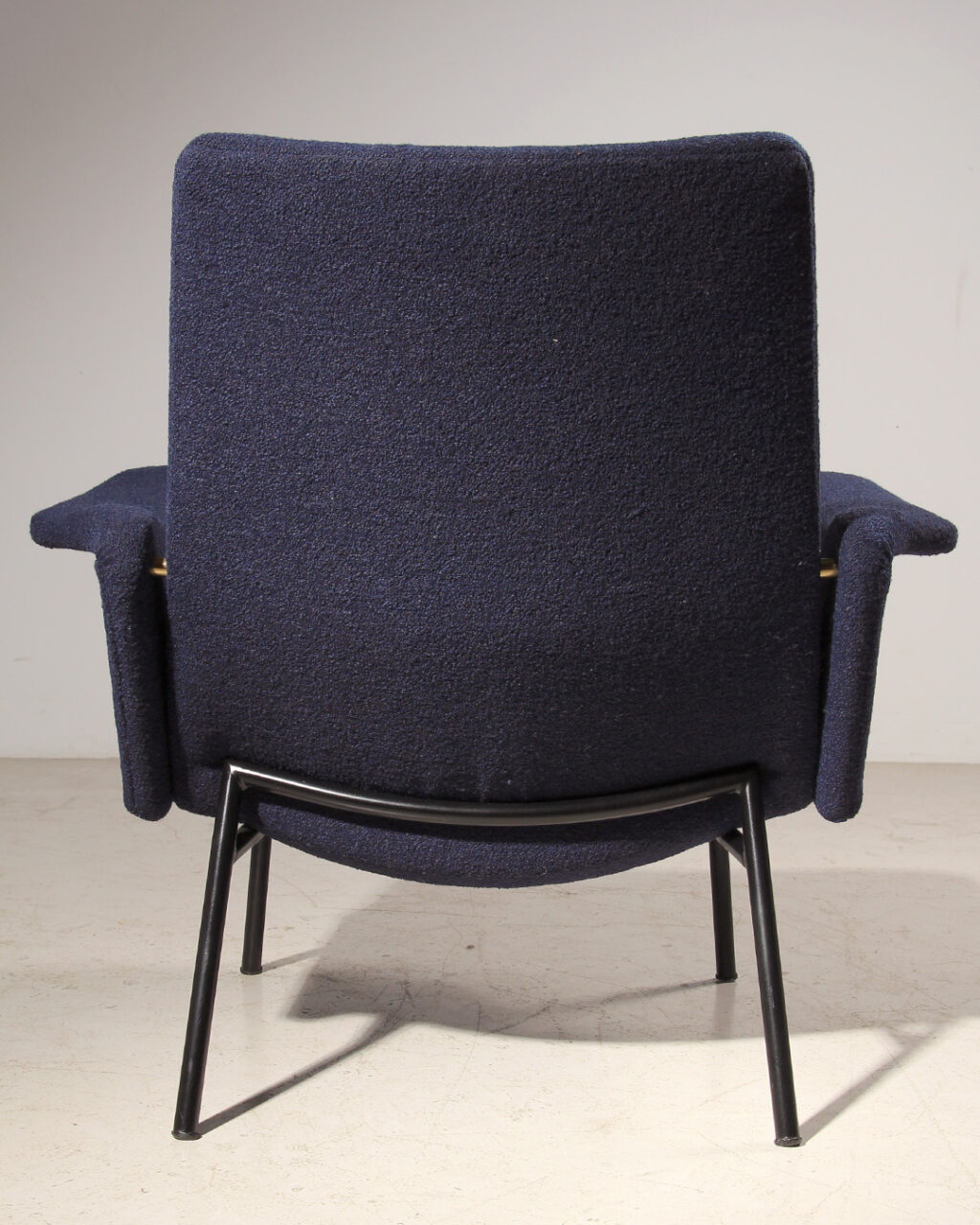 Réfection complète des sangles mousse et tapisserie – Tissu à bouclettes bleu foncé