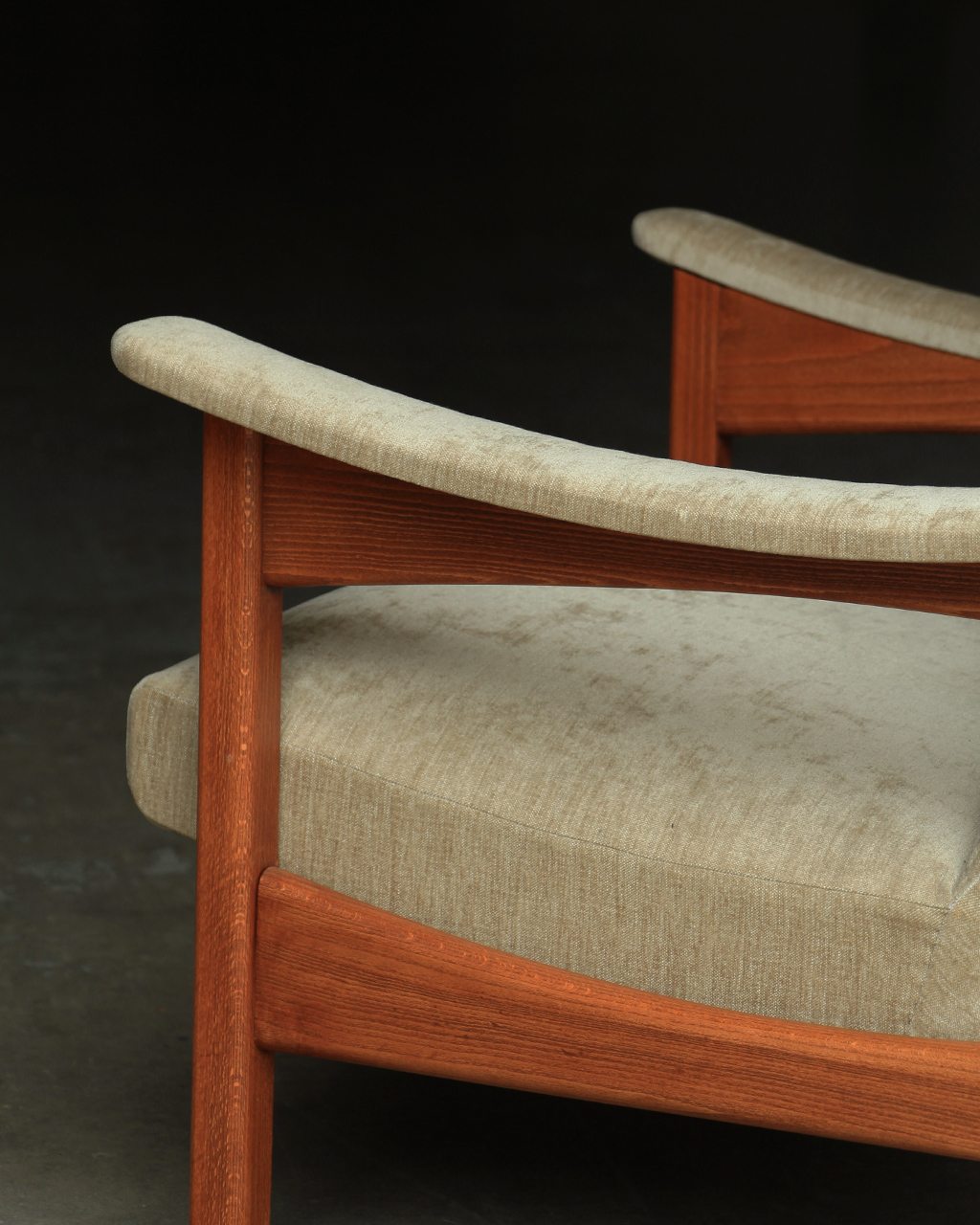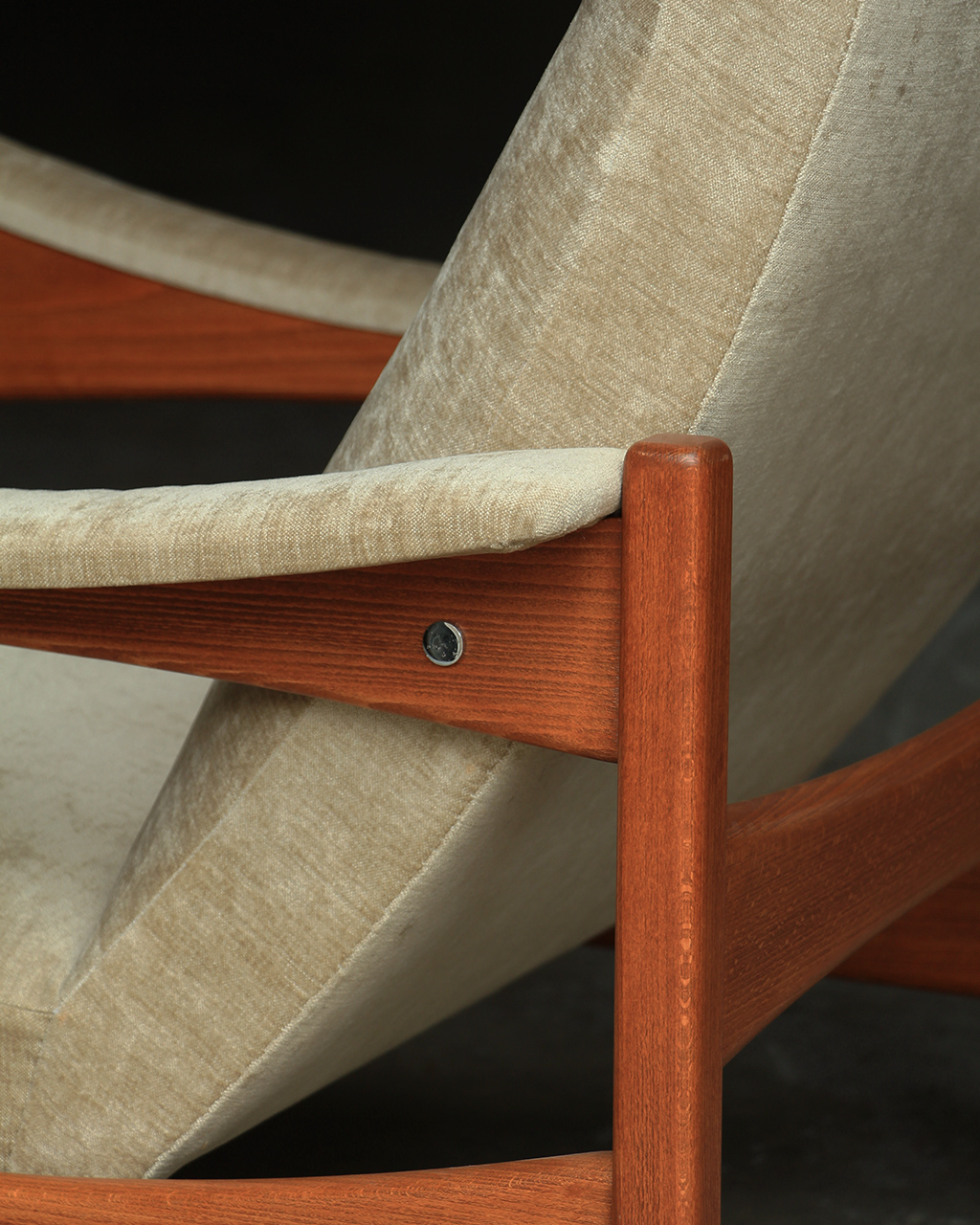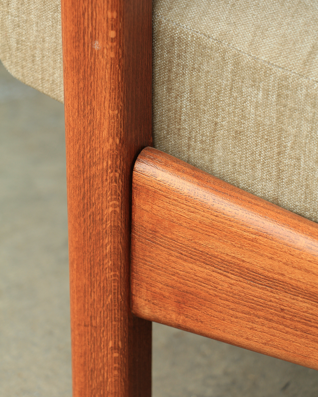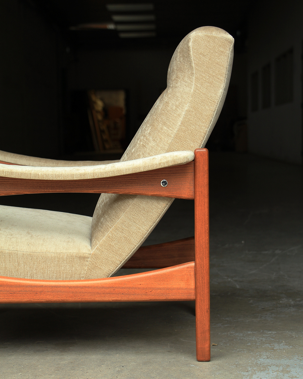 Structure en hêtre massif, ses lignes ne sont pas sans rappeler le mobilier scandinave.