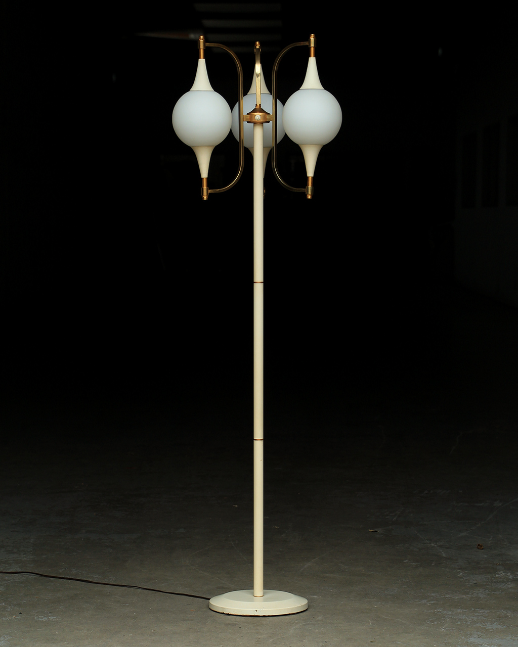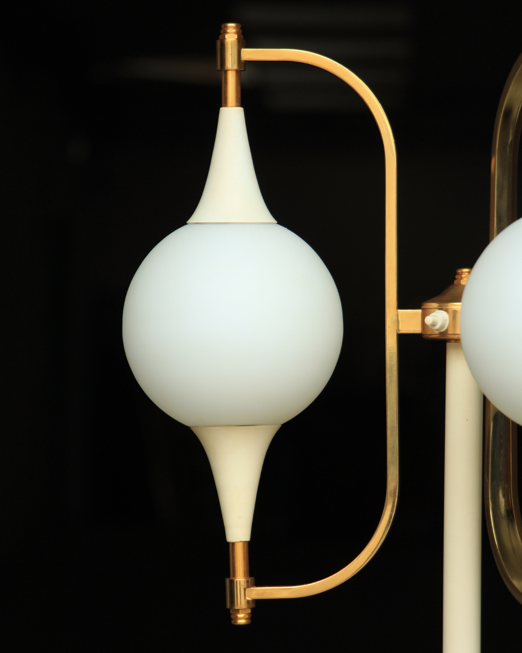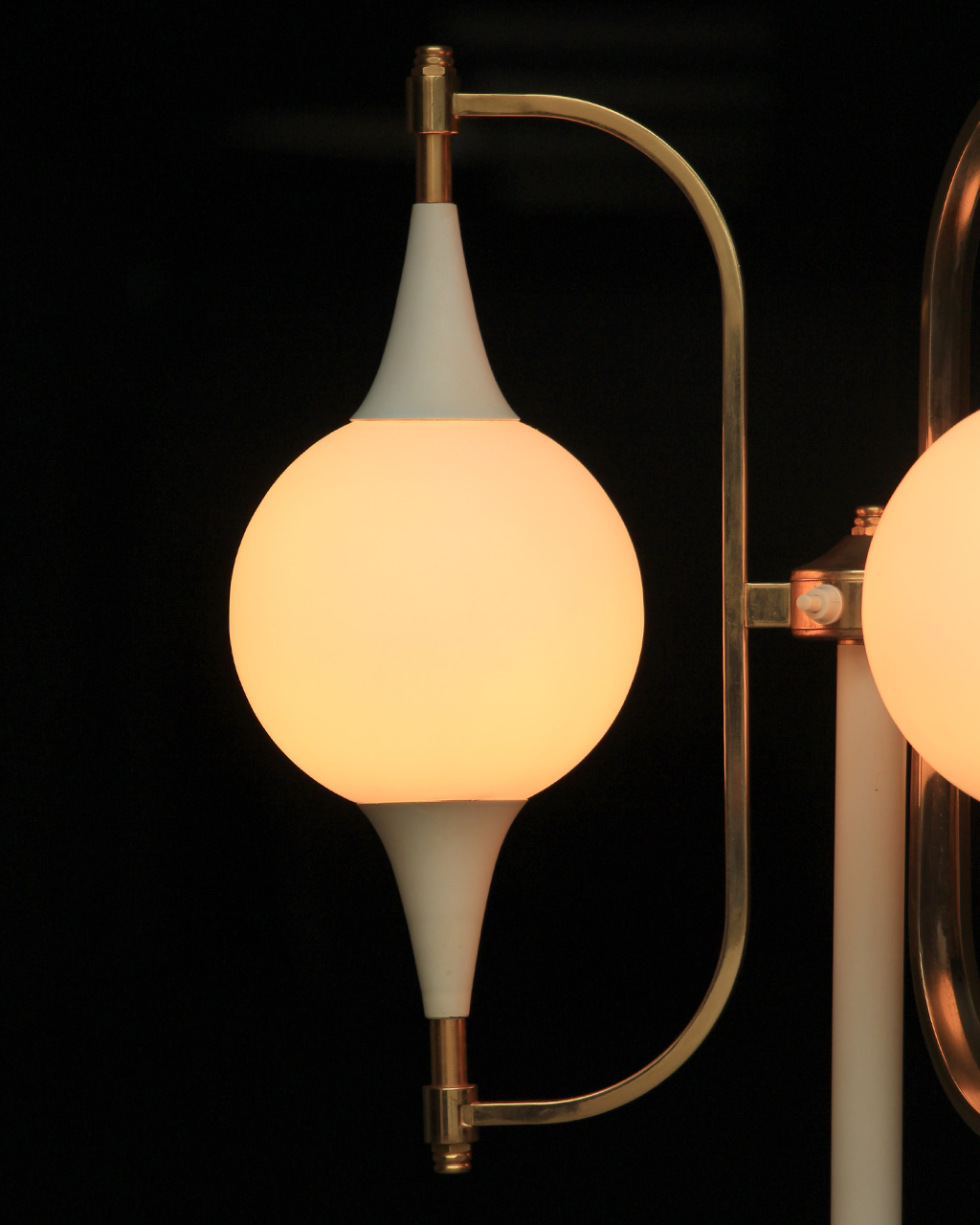 En métal laqué blanc et doré et globes en verre opalin.