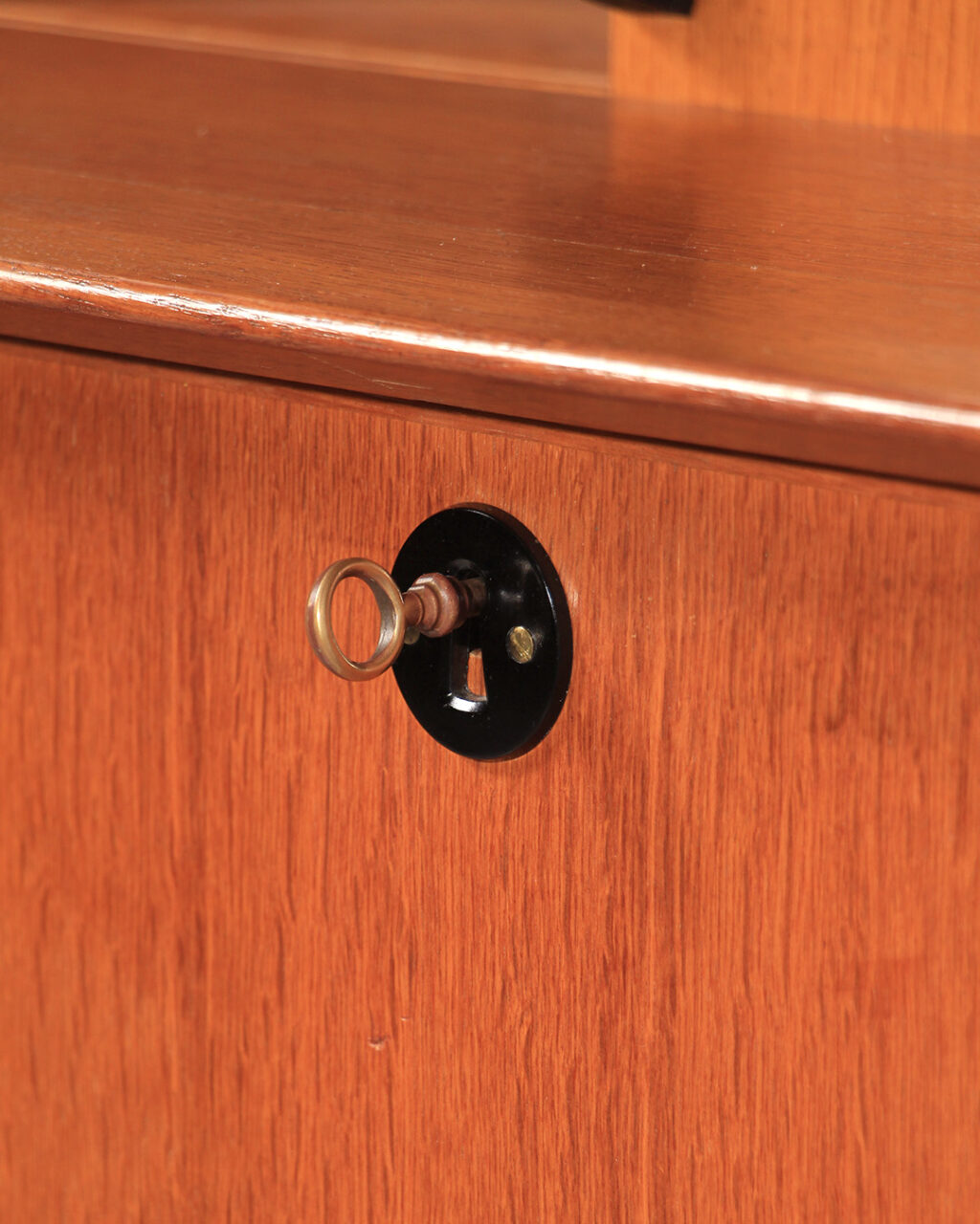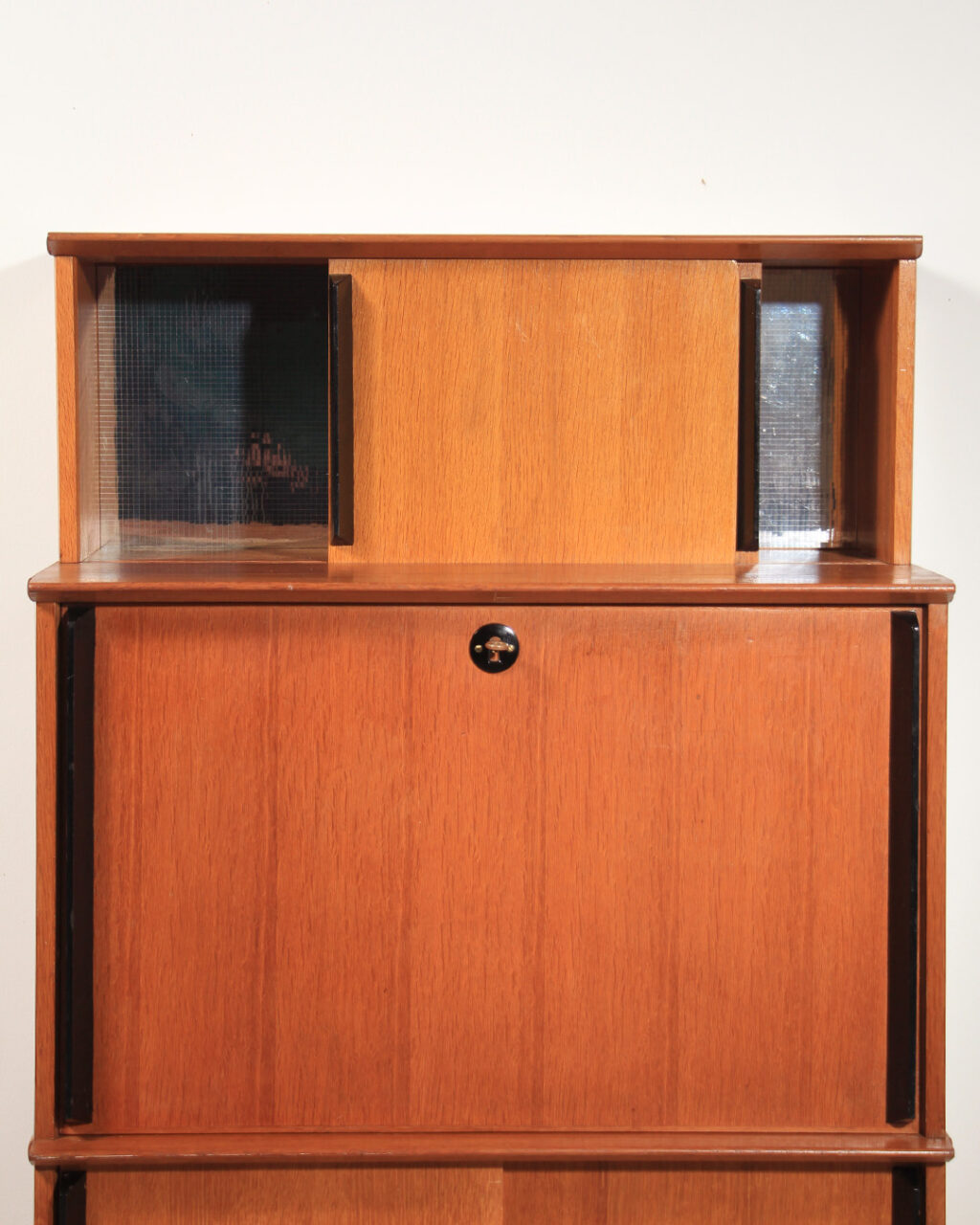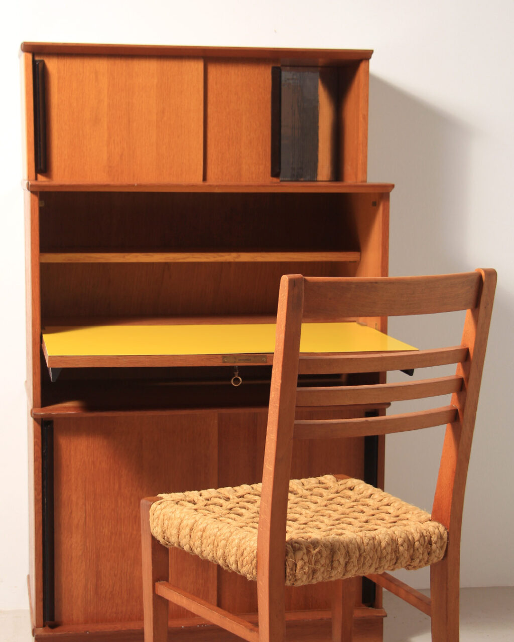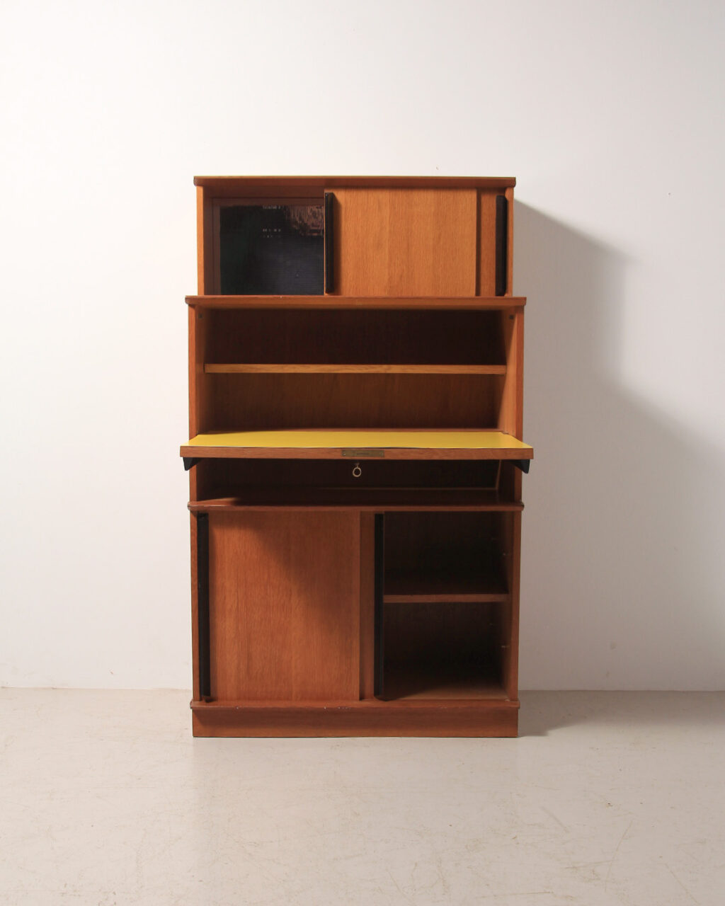Meuble secrétaire Oscar avec portes coulissantes et abattant secrétaire.